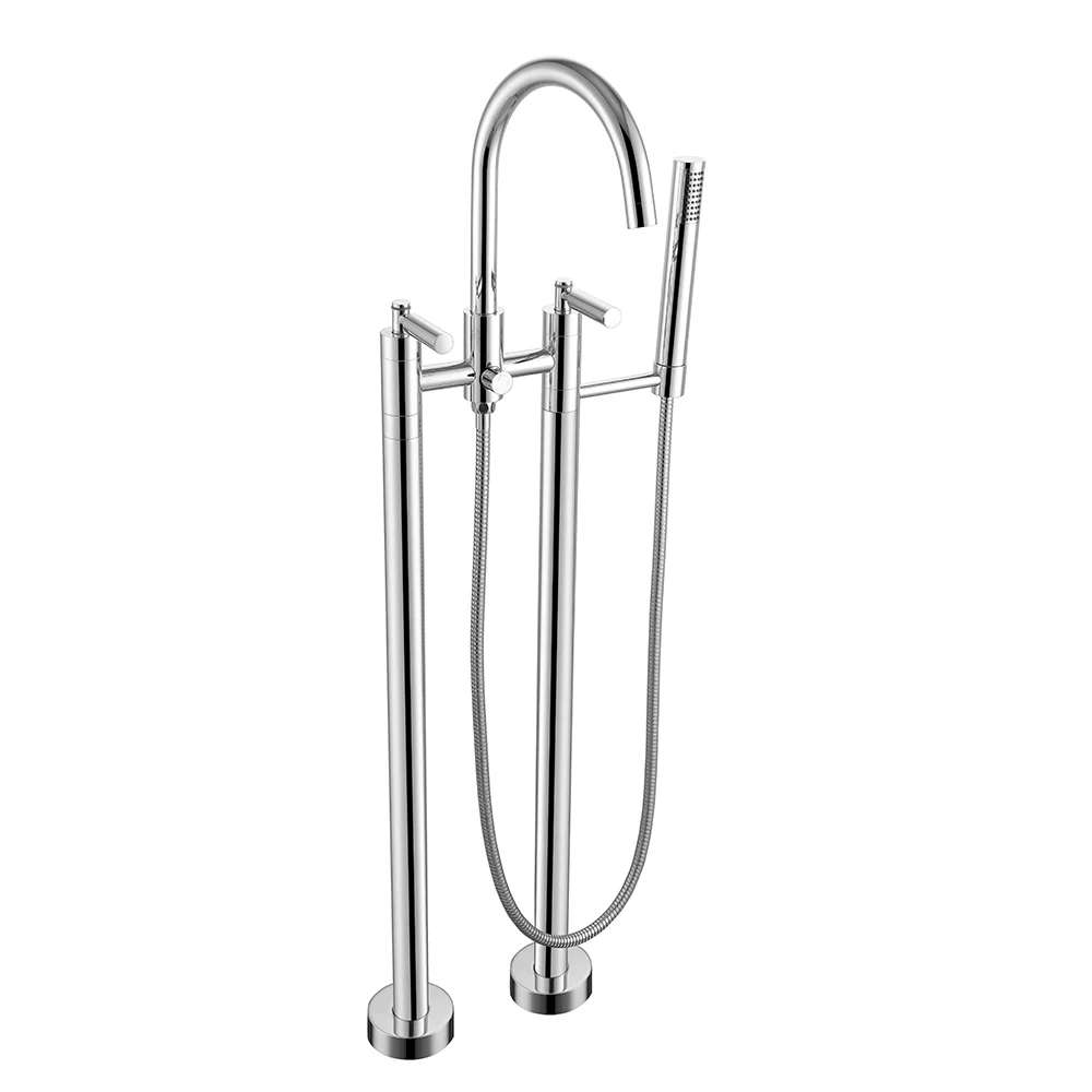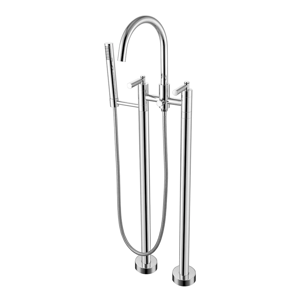 Свободно стоящ кран за вана Полирани никелов подовен месинген кран с една ръчка за баня с душ оптово